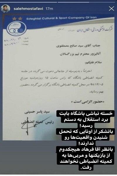 http://tabasomemehr.ir/fa/News/75656/استوری-کنایه-آمیز-مربی-استقلال-به-کمیته-انضباطی