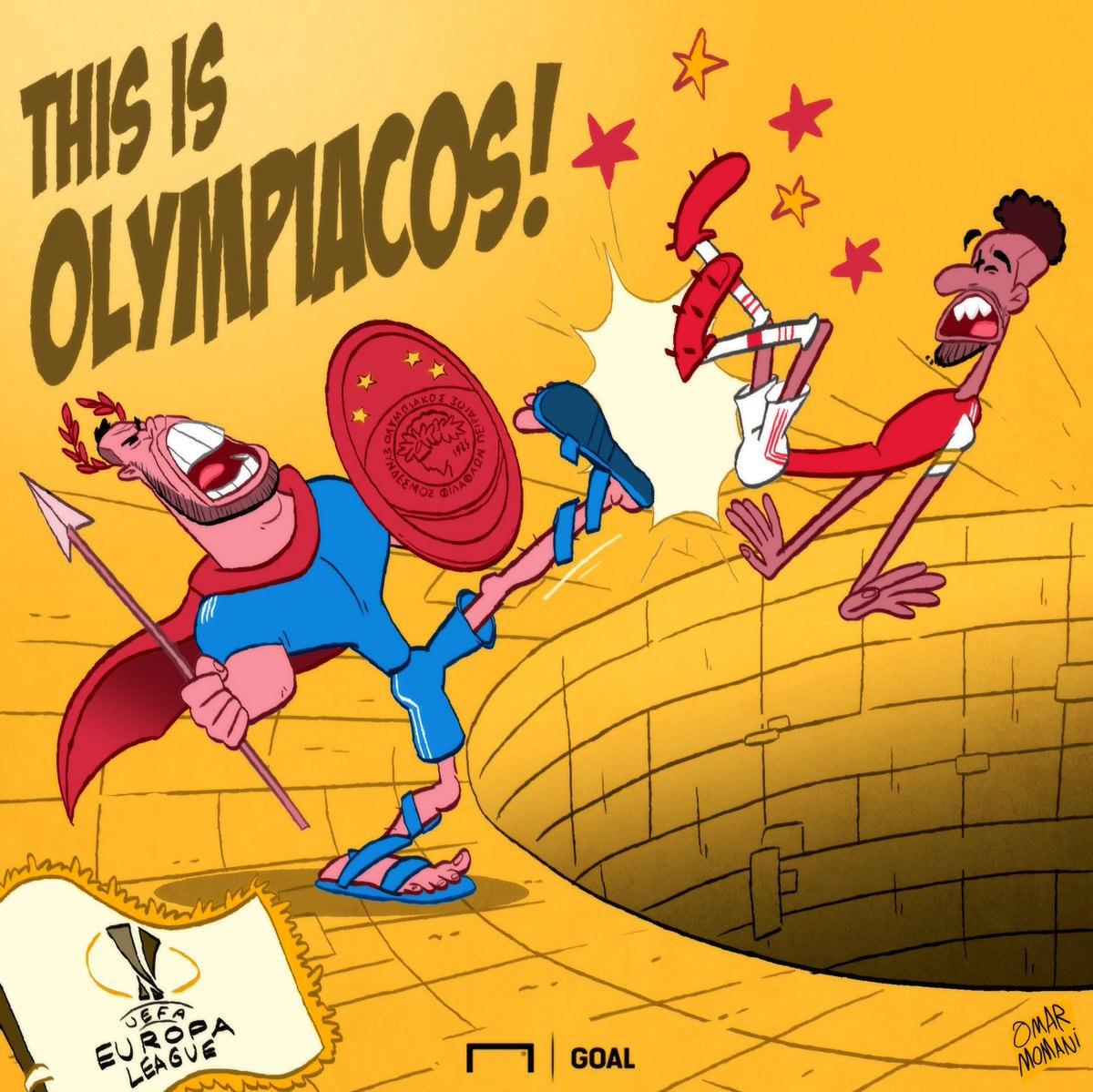 تبسم مهر - یک گل تماشایی اوبامیانگ زد، اما ثانیههای آخر فرصت خوبی را به طرز عجیبی هدر داد تا با تراژدی آرسنال حذف شود و المپیاکوس به مرحله بعد برسد. عمر مومنی اینگونه اتفاقهای دیدار آرسنال و المپیاکوس را به تصویر کشیده است.